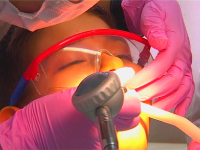 - снятие пигментированного налета с поверхности зубной эмали (от чая, кофе, курения) аппаратом Air-Flow. Использование этой технологии (подачи мелкодисперсной соды, смешанной с дистиллированной водой под давлением) позволяет отбелить зубную эмаль до ее естественного цвета;